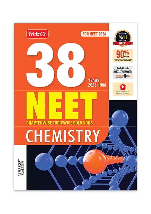 MTG’s 38 Years Chapter-wise Topic-wise Solutions is students’ No. 1 choice for excelling at the NEET 2025 exam. Based on the syllabus of class 11 and class 12, this book is separated into chapter-wise and topic-wise manner with an extensive range of questions from the last 38 years to give you ample practice. The following are the notable features of the book-