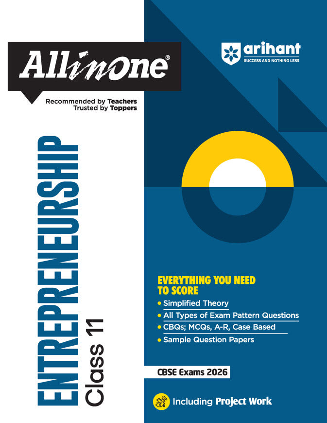 CBSE All in One Entrepreneurship Class 11 Exam 2025-26 | Simplified thoery, CBQs, MCQs, A-R, Case Based, Sample Question Papers | Including Project Work