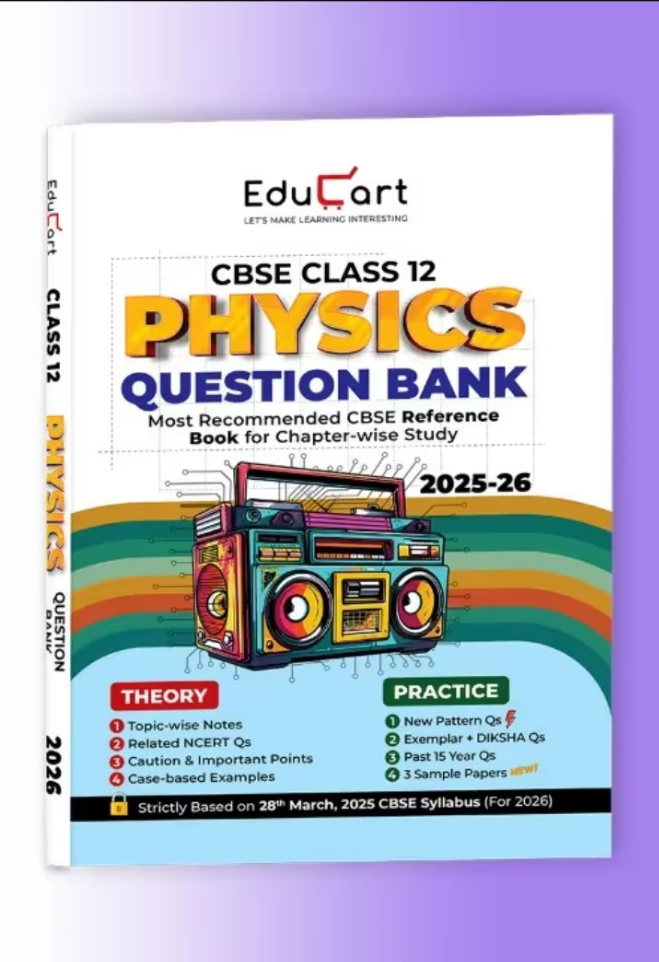 Educart CBSE Class 12 Physics Question Bank 2025-26 on new Syllabus 2026 (Includes Past Years Solved Questions)