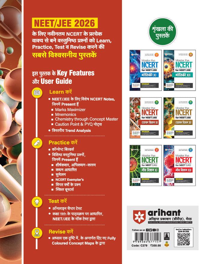 A good grip over NCERT concepts has become a necessity for aspirants who are preparing for any competitive exams. Also, after rationalization of syllabi in competitions like NEET, and JEE Main and their syncing with different state boards, it is very much expected that their papers will contain most of the questions from NCERT. To cater to this situation, the need for dual synchronous preparation is simultaneously increasing day by day. Arihant Master the NCERT Series is framed, developed, and now revised with the same philosophy of synchronous preparation. The book provides the complete resource for gripping NCERT with learning, practice, and assessment tools.