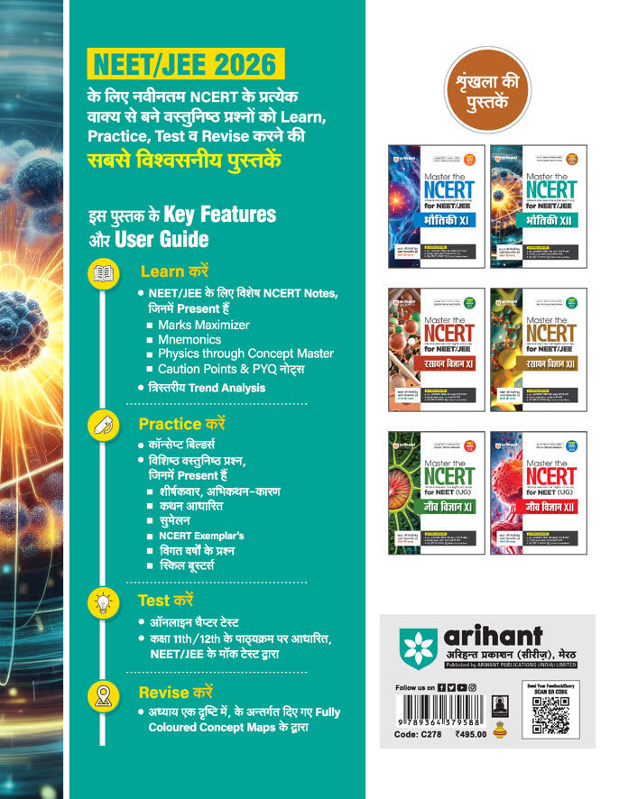 A good grip over NCERT concepts has become a necessity for aspirants who are preparing for any competitive exams. Also, after rationalization of syllabi in competitions like NEET, and JEE Main and their syncing with different state boards, it is very much expected that their papers will contain most of the questions from NCERT. To cater to this situation, the need for dual synchronous preparation is simultaneously increasing day by day. Arihant Master the NCERT Series is framed, developed, and now revised with the same philosophy of synchronous preparation. The book provides the complete resource for gripping NCERT with learning, practice, and assessment tools.