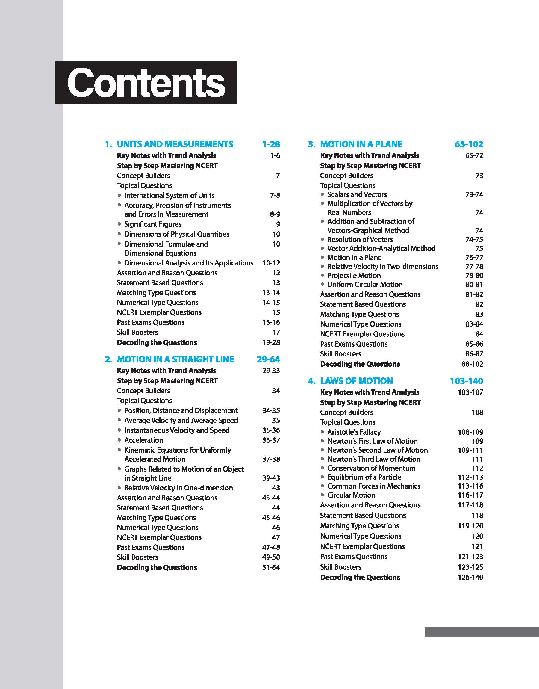 - Exercise portion is scientifically designed for step-by-step mastering through Concept Builders, Topical MCQs, Assertion-Reason, Statement-Based, Matching, Numerical, NCERT Exemplar’s, Past Exams’ and Skill Boosters.
